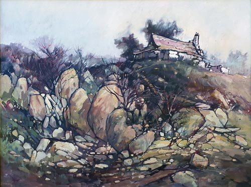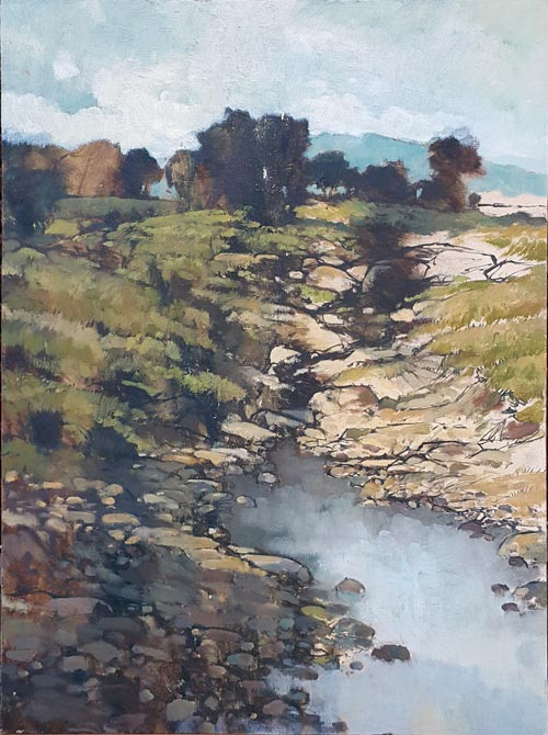 Chris’s oil paintings have overtones of impressionism and suggest at times a slightly moodier, melancholic structure. This pervading ‘mood’ allows the viewer to approach the work in a quiet and reflective manner. At times his palette is almost monochromatic, letting loose, energetic brushstroke come to the fore. His work has been well received both home and abroad.