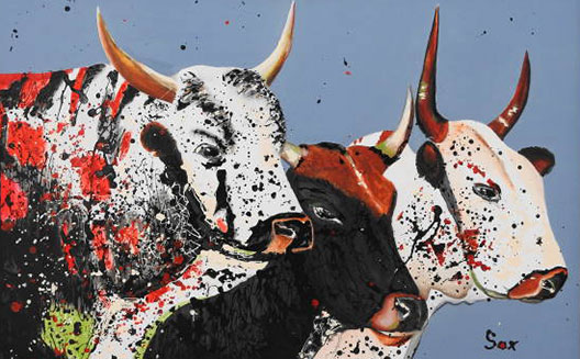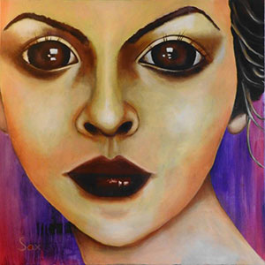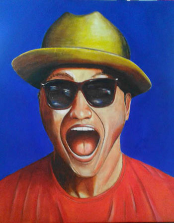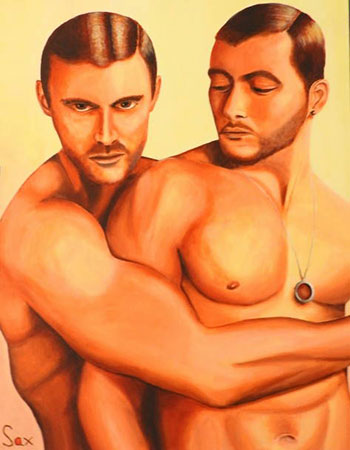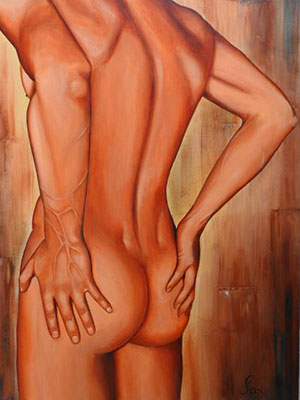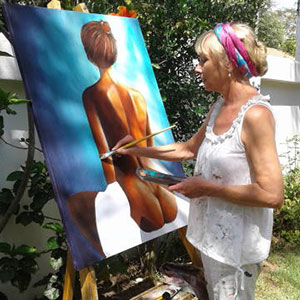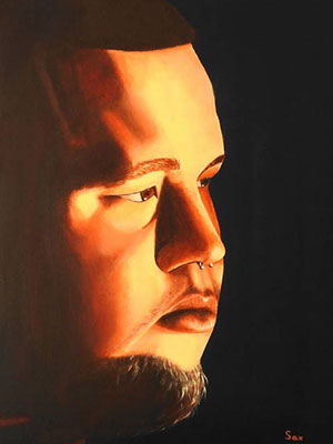 I’m an American born German artist, living in South Africa. Painting has always been my passion, but in 2007 I started to paint more seriously. After drawing in pencil and oil pastels I started painting in acrylic and oil. I love trying out different techniques and experimenting with new and interesting art mediums. I also use enamel which I drip onto a board or canvas. I’ve “painted” with candle smoke or used spray paint that I set on fire. It can be a bit frustrating at times, but if the paper doesn’t burn away you can really achieve interesting results. My favorite subjects to paint are nudes and portraits of celebrities, preferably the guys from the music scene.