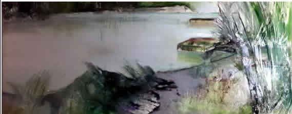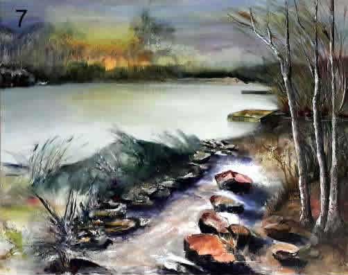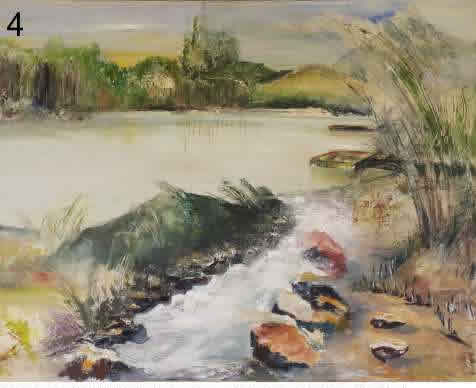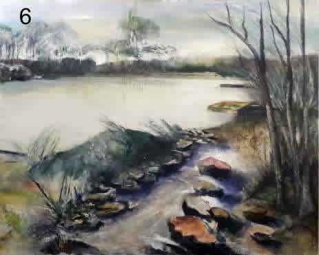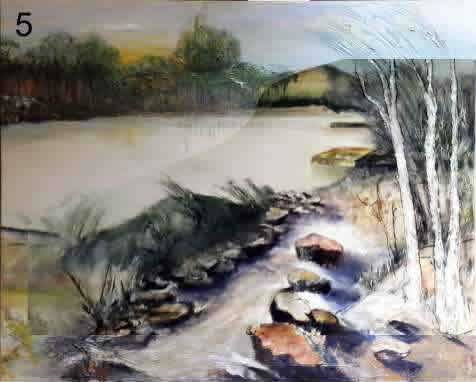 Progression (a feeling that the background trees are too dense, I painted over the white acrylic. One of the abilities of acrylic, to change and/or enhance the mood of the painting)
