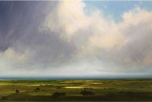 Cloudy skies change quickly so, the trick is soaking up the atmosphere first. “Landscape painting is about trying to capture the moment rather than creating an illustrative picture.” Some artist go walking in parks or on the beach or in nature for inspiration, then return home or to the studio to paint from memory. “sometimes taking a photo to refer to is a good idea