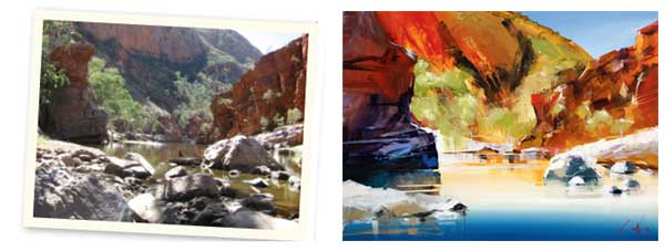 To add warmth to a landscape, prime your boards first so that you aren’t working on a cold, white backdrop. When the background shows through parts of one’s painting it creates a kind of a glow. An option is to choose a warm yellow backdrop for your paintings of buildings or urban district landscapes and, rather unusually, an inky red for the seascapes or portraits This tends to be good for early morning or evening light.